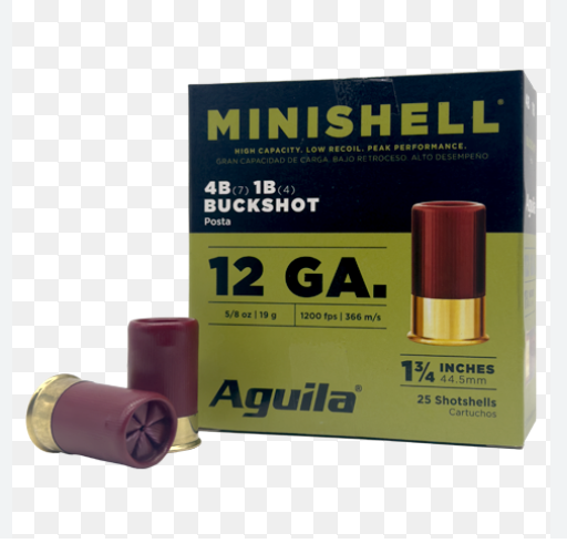 Aguila Minishell 12 Gauge Ammo 1 3/4″ 5/8 oz #4 and #1 Buckshot 11 Pellets 25/bx – 1CHB1385