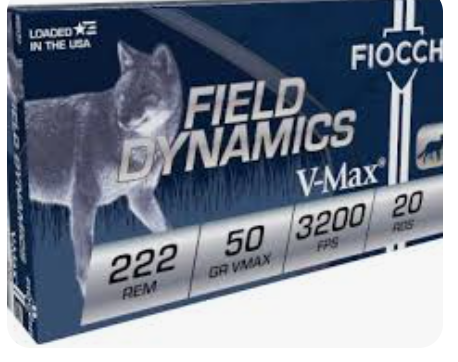 Fiocchi Extrema 222 Remington Ammo 50 Grain Hornady V‑Max Polymer Tip 20/bx – 222HVA