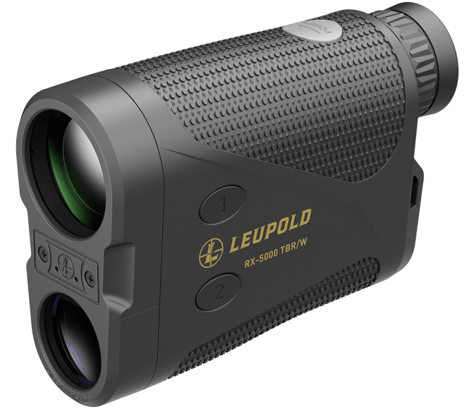 The RX-5000 TBR/W is the rangefinder for the modern hunter. With an impressive 5000-yard ranging capability this optic ensures precise shots every time. But what really sets it apart is its integration with the Leupold Control app allowing you to remotely drop location pins to your phone using digital maps like onX Hunt. – Along with its pinning feature the RX-5000 TBR/W includes our popular True Ballistic Range (TBR) mode which provides custom readings based on distance angle and your bullet’s characteristics. Without it you could miss your targets by almost a full 15 inches. – Then there’s the new addition: Long Range (LONG) mode. Instead of helping you dial in your shots this mode will help you get situated in the field. It enables you to range up to 5000 on trees and deer-sized game making it the perfect tool for navigating from one ridgetop to the next. – We’ve also outfitted this rangefinder with best-in-class 8x power a bright red OLED display and a waterproof housing. So whether you’re scouting in springtime showers or hunting the rugged coastline of Alaska the RX-5000 TBR/W will keep you firmly in control. – Line of Sight (LOS) Mode – TBR-W – Long Range (LONG) Mode – Control App Compatible – Pinning? – Last Target Mode – Red OLED Display – Selectable Reticles – Waterproof and Fogproof – Battery Type CR123 – Display Color OLED (Red Display) – Magnification 8 – Rifle Angle Compensation TBR – True Ballistic Range (TBR) Yes – Length (in) 4.4 – Width (in) 1.6 – Height (in) 3.1 – Weight (oz) 9.7 – Objective Diameter (mm) 30 – Linear FOV (ft@1000 yd) 289 – Angular FOV (Degrees) 5.5 – Eye Relief (mm) 17.3 – Min Diopter (dpt) -3 – Max Diopter (dpt) 3 – Light Transmission (%) 80 – Battery Life (Actuations) 3000 – Accuracy to 125 (yd) .5 – Accuracy to 1000 (yd) 2 – Accuracy above 1000 (yd) % .2 – Max Range Deer (yd) 2000 – Max Range Trees (yd) 3100 – Max Range Reflective (yd) 5000 – Min Range (yd) 6 – Laser Classification Class 1M