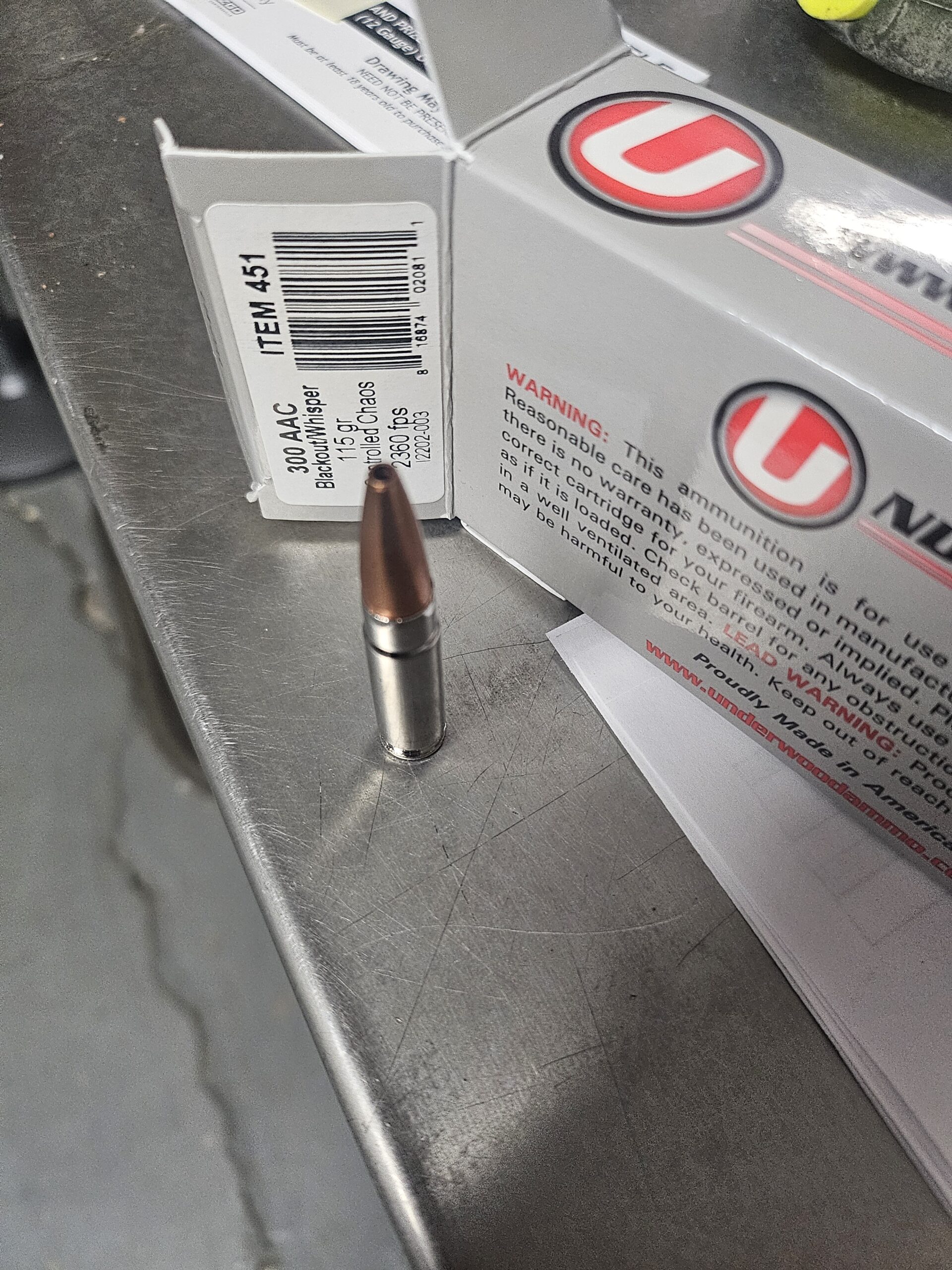 Underwood Ammo .300 AAC Blackout Controlled Chaos 115 Grain Solid Monolithic Hollow Point Nickel Plated Brass Cased Rifle Ammunition 20/bx – 451