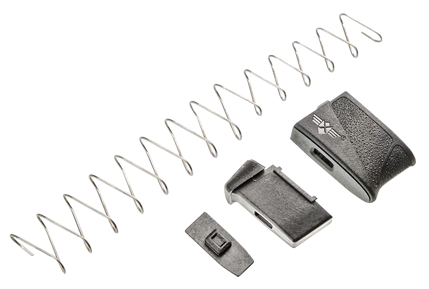 Fits M&P Shield 9mm and 9mm 2.0. For use with .40 S&W 1.0 and 2.0 use factory spring. Not compatible with Shield 9mm EZMP Shield mag extension adds 2 rounds to both the factory 7 and 8rd magazines. Uses factory sleeve when used with the 8rd magazine. Custom engineered spring. Optimal ergonomics and texture for recoil control. Adds 1rd and requires use of factory spring for Shield .40 S&W